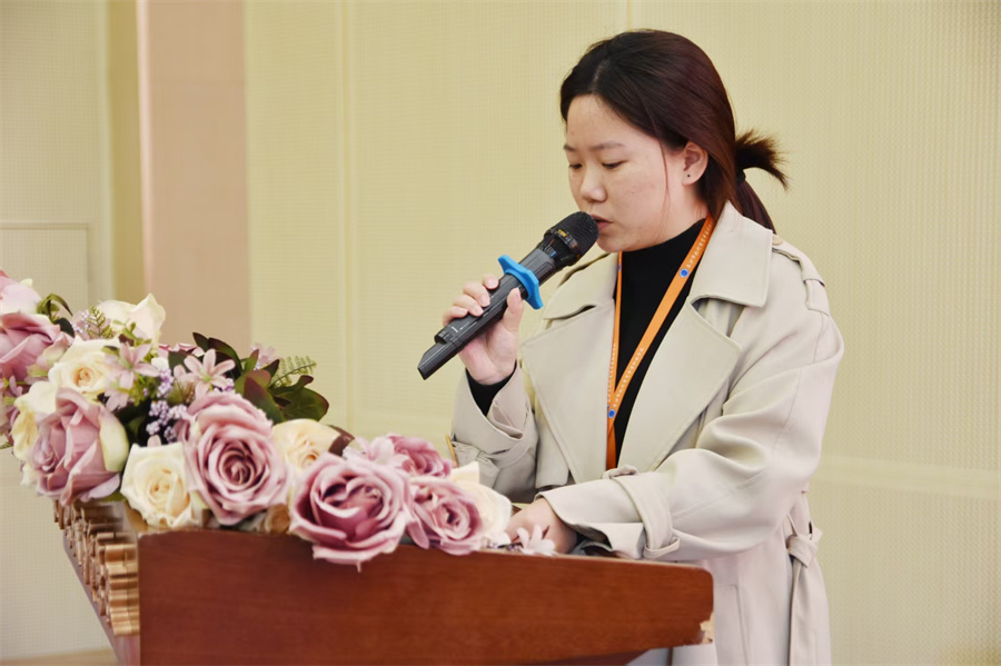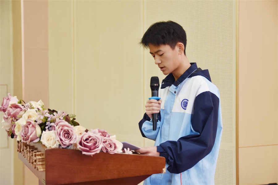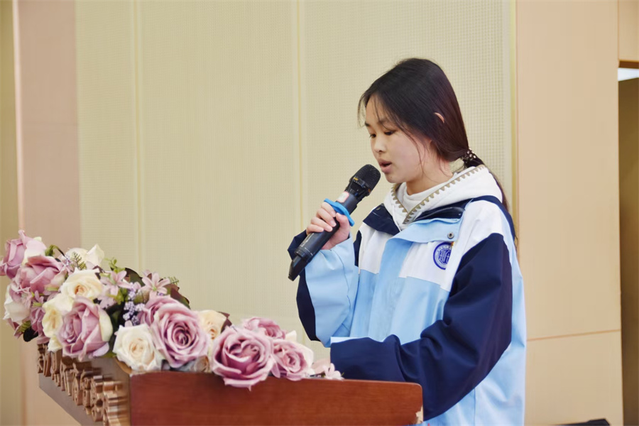 随后,学生团委副书记谭佳璇作为优秀团员代表发言,她先向入团积极分子致以欢迎,明确共青团是青年的先进组织,号召团员强化意识、在学习生活中发挥模范作用,并寄语新学员以团课为契机淬炼成长,早日成为光荣的共青团员,以青春姿态在团旗下奋进。